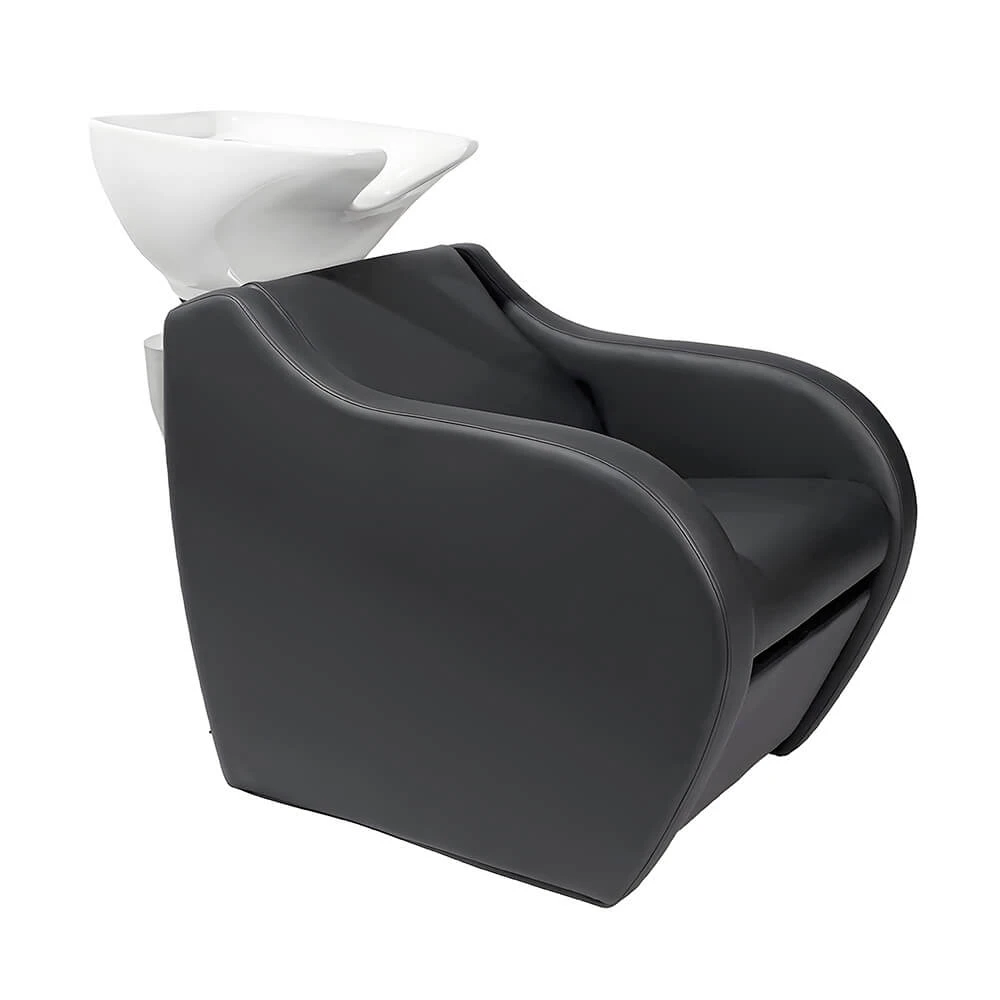 La tercera variante es el modelo Wave, un lavacabezas convencional sin reposapiés. Mantiene las prestaciones en cuanto a ergonomía y materiales de gama alta. Sus medidas son: Altura total: 100 cm Altura de asiento: 43 cm Ancho: 132 cm Profundidad de asiento: 48 cm Al igual que los modelos anteriores, la pica es cerámica con acabado blanco o negro. Basculante y profunda para un correcto lavado de cabeza. La grifería es monomando cromada de alta gama. Incluye flexible y ducha extraíble en poliamida y acero inoxidable. El desagüe es de acero inoxidable con cestilla atrapapelos. Tanto el respaldo como el asiento están acolchados con muelle para una posición anatómica. El revestimiento es en PVC negro de alta resistencia y fácil limpieza. El respaldo es desmontable para facilitar la instalación de la pica y conexiones.