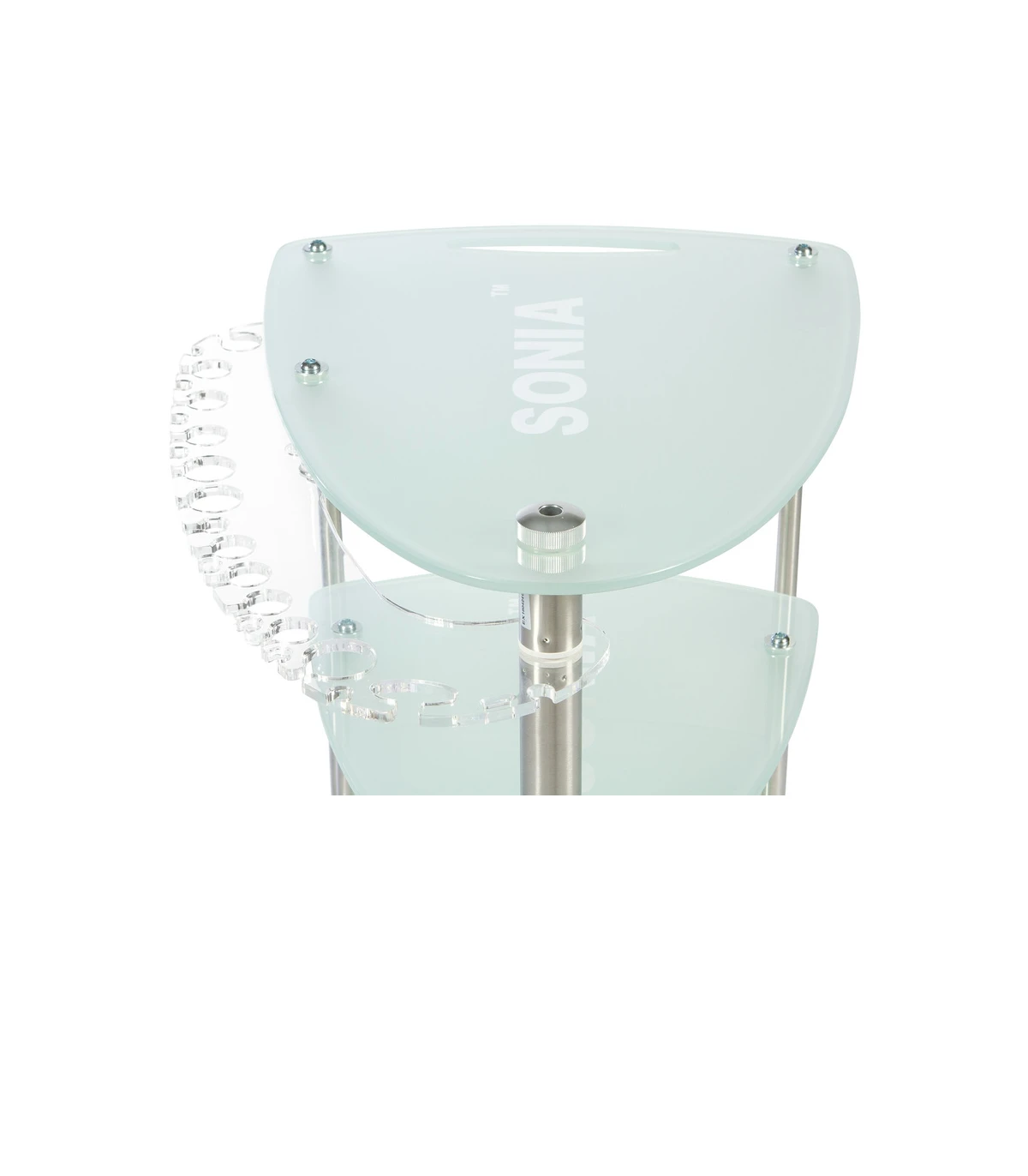 Capacité de Stockage : Avec ses quatre étagères en verre fumé, ce chariot offre un espace ample pour ranger les produits et les outils de beauté.