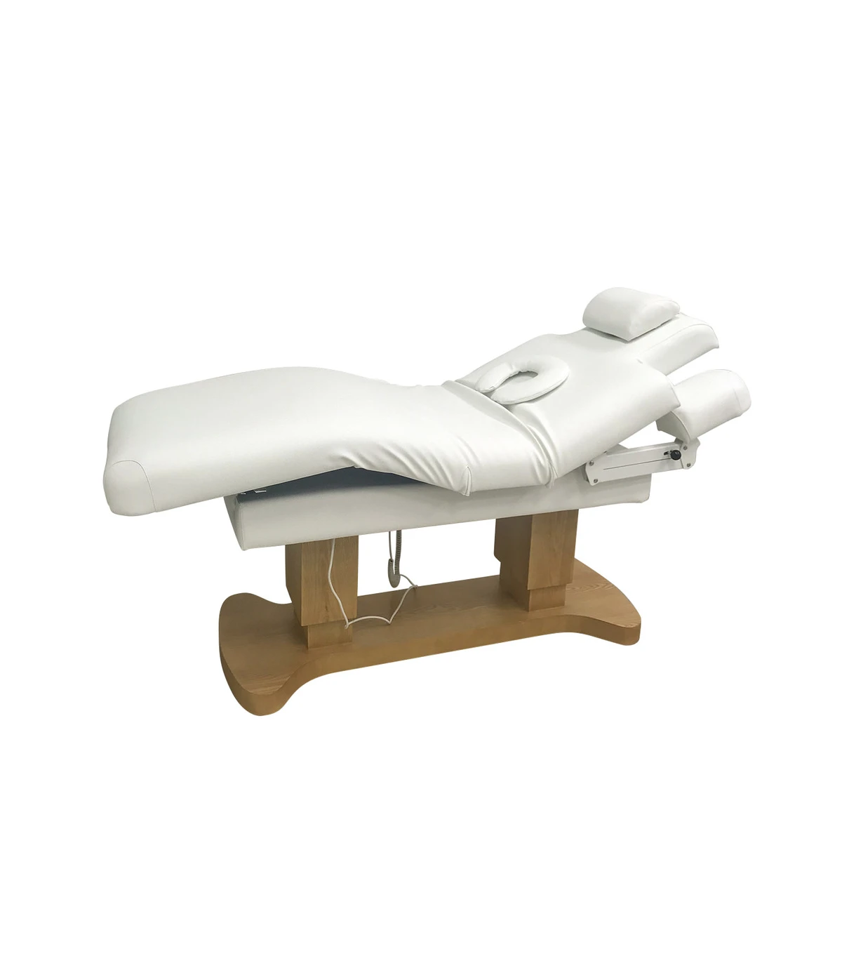 La Table de Massage Électrique Spa Supreme est équipée d'un système de réglage électrique avec trois moteurs qui vous permettent d'ajuster la hauteur, le dossier et les zones des jambes pour obtenir les bonnes positions pour tout type de traitement. Le revêtement en bois ajoute une touche élégante recherchée par les salons les plus raffinés tout en renforçant sa structure en fer et en acier de haute qualité.