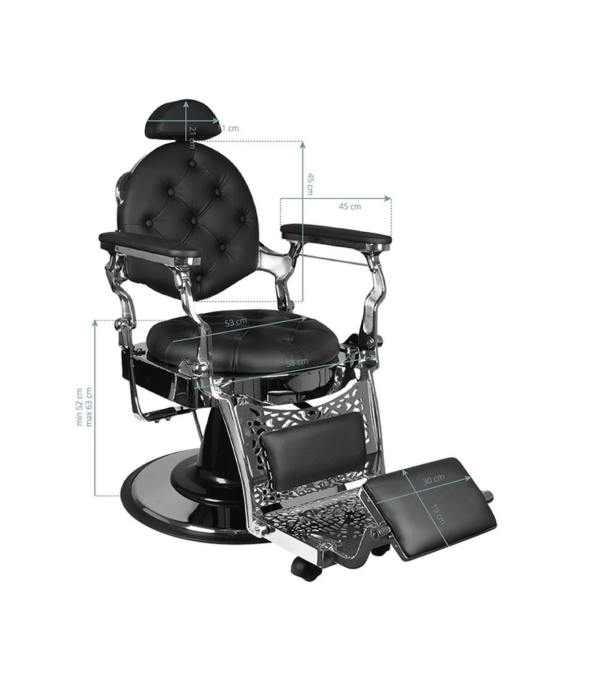 Esta cadeira não é apenas um simples assento; é uma declaração de estilo e profissionalismo. Cada detalhe foi meticulosamente projetado para oferecer o máximo conforto tanto ao barbeiro quanto ao cliente.